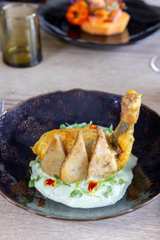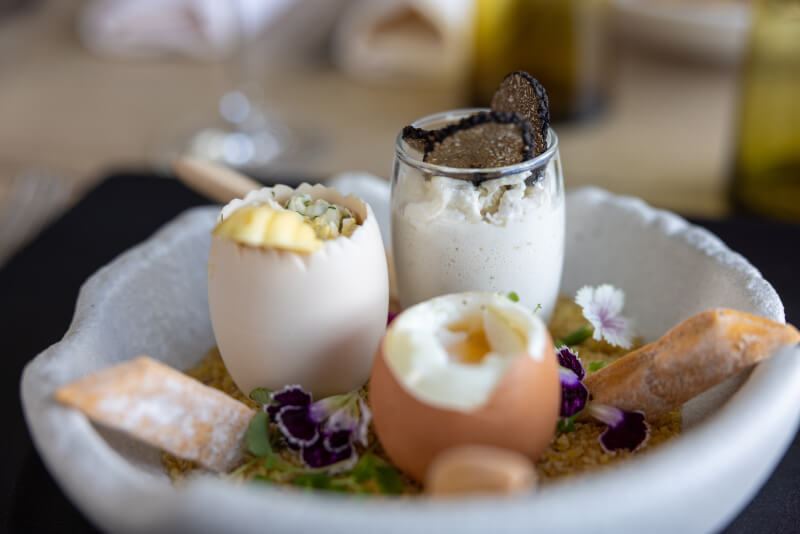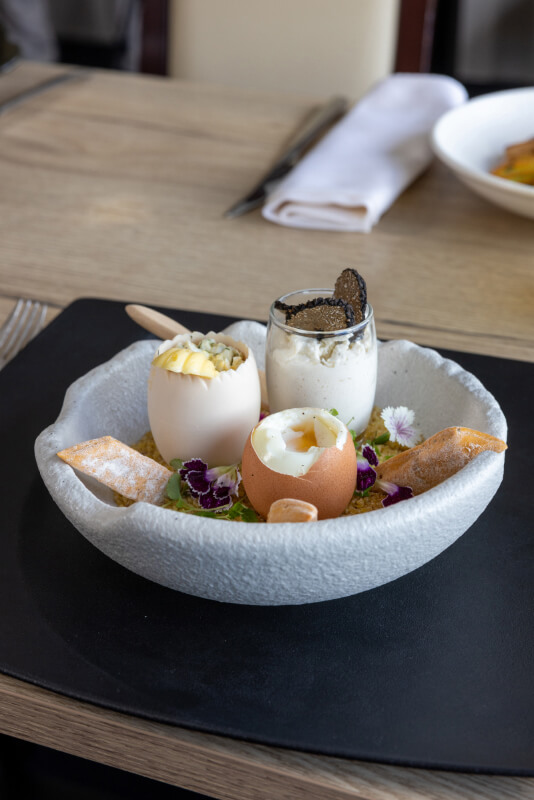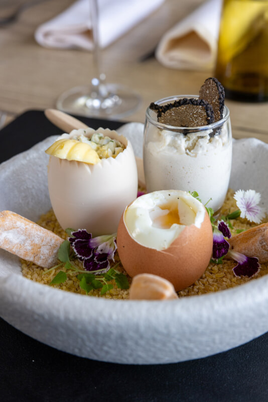 Crémeux de panais coriandre et pignons/Œuf mollet /croustillant aux épices