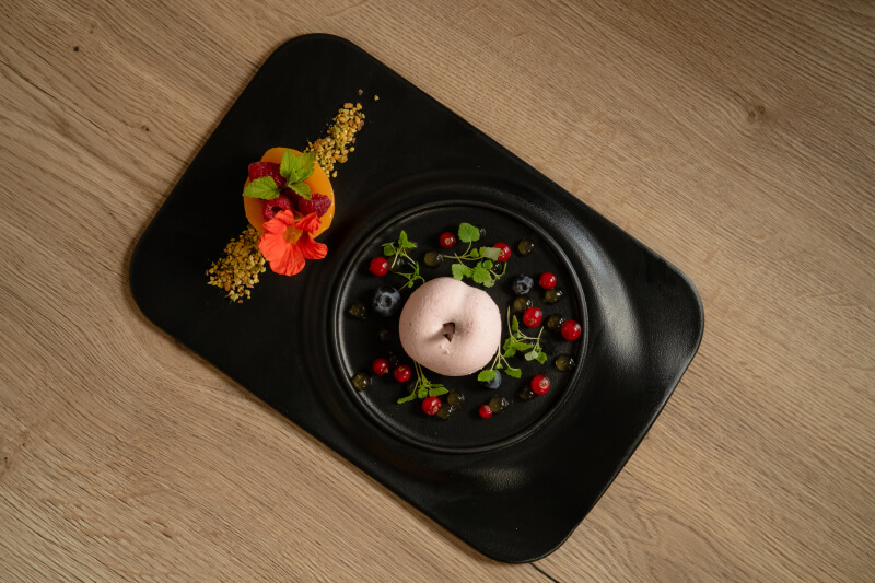 Civet de cerf /émulsion à la cranberries /grains de grenade