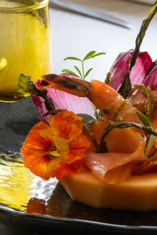 Poitrine de canette au caramel de cidre /tartare de pommes du couvent